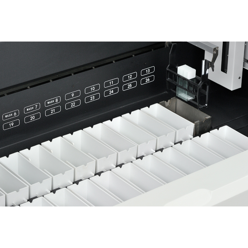 染色站點數量 總站點數26個,(含試劑站點17個,水洗站點4個,烤缸1個,加載/卸載站點≥4個(智能配置,其中2個缸可設置為試劑缸) |